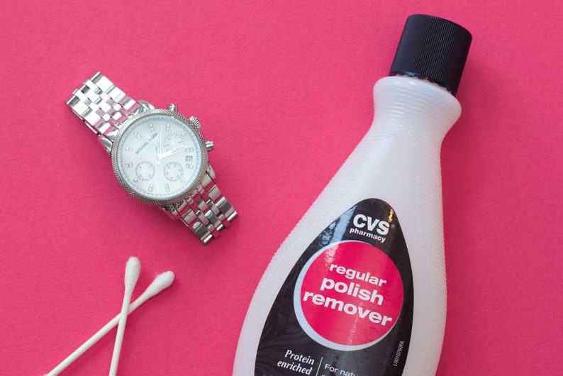 Làm sạch dây: tháo dây đồng hồ bằng kim loại, thép không gỉ ra ngâm trong giấm táo một đêm, các loại dấm khác là một ngày. Sau đó rửa sơ bằng nước sạch và dùng khăn (đừng dùng khăn lông, khăn mềm), bàn chải, miếng rửa chén bằng nhựa, miếng nhám cạo gỉ. Phải cẩn thận, tốt nhất là dùng khăn hay bàn chải cạo để tránh làm trầy.