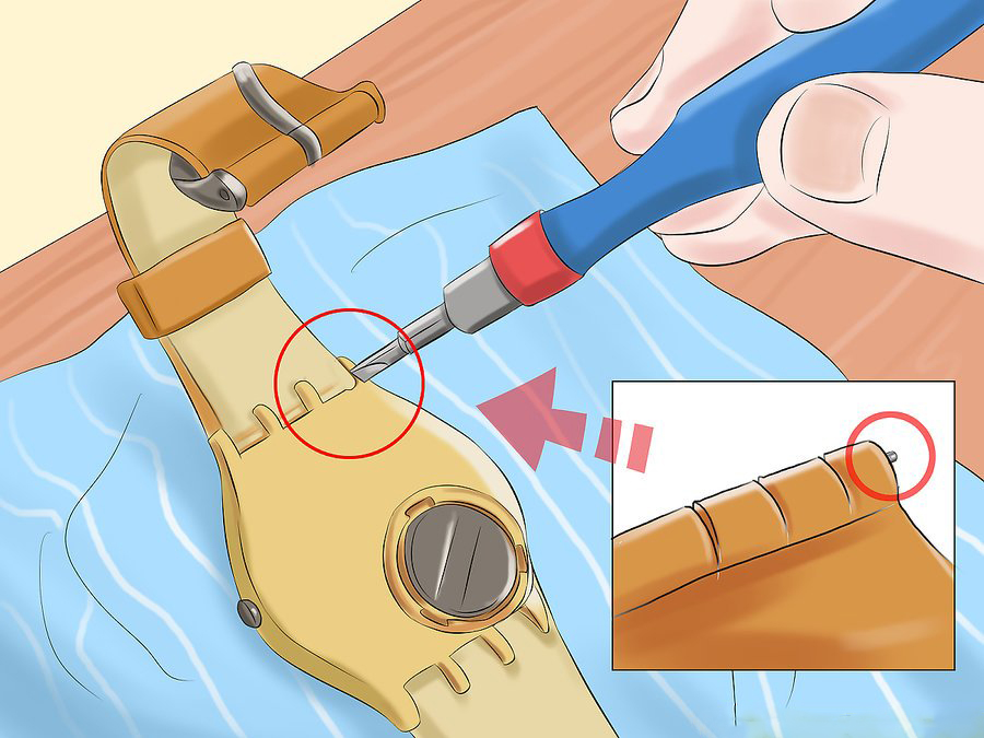 Bây giờ bạn chỉ cần lặp lại quá trình trên cho phần còn lại của dây đeo đồng hồ, chú ý đển tiếng click nhẹ cho biết suốt dây đã vào vị trí. Một khi cả 2 phần suốt dây được cố định, bạn hãy kiểm tra lại để đảm bảo dây đeo đồng hồ không bị lỏng 2.4. Đến cửa hàng bảo dưỡng đồng hồ chuyên nghiệp: